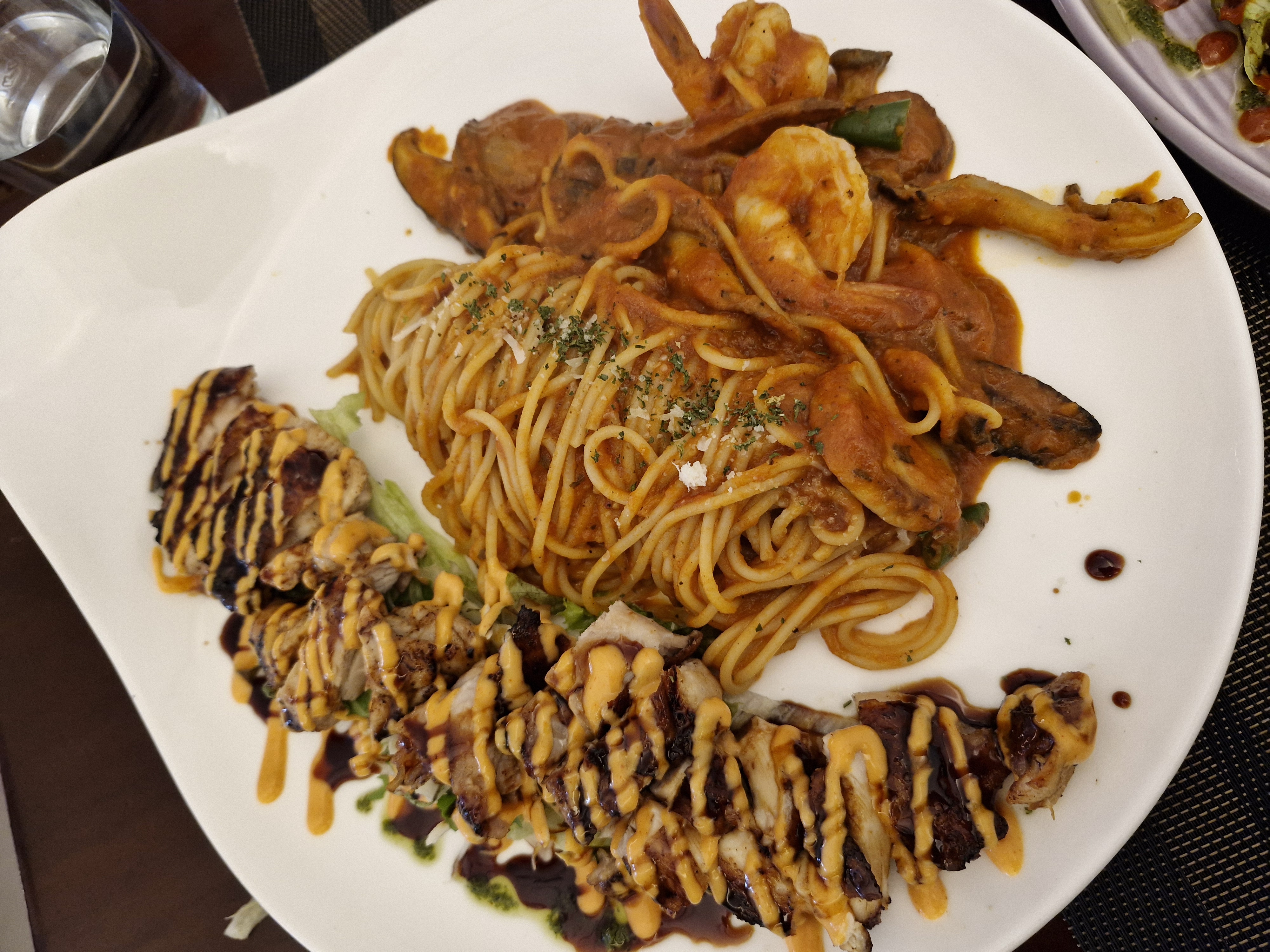 왕새우가 들어간 토마토스파게티 또한 굿
